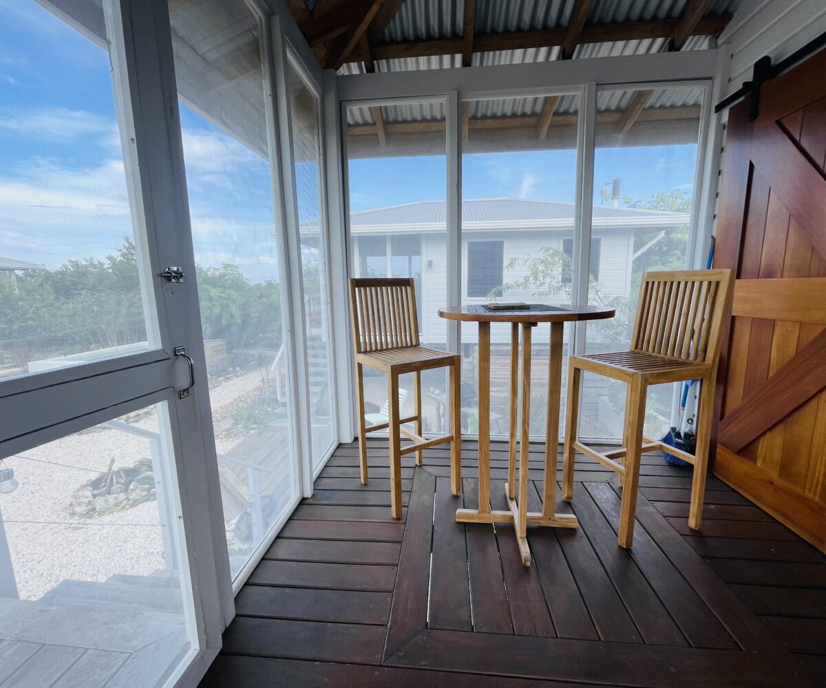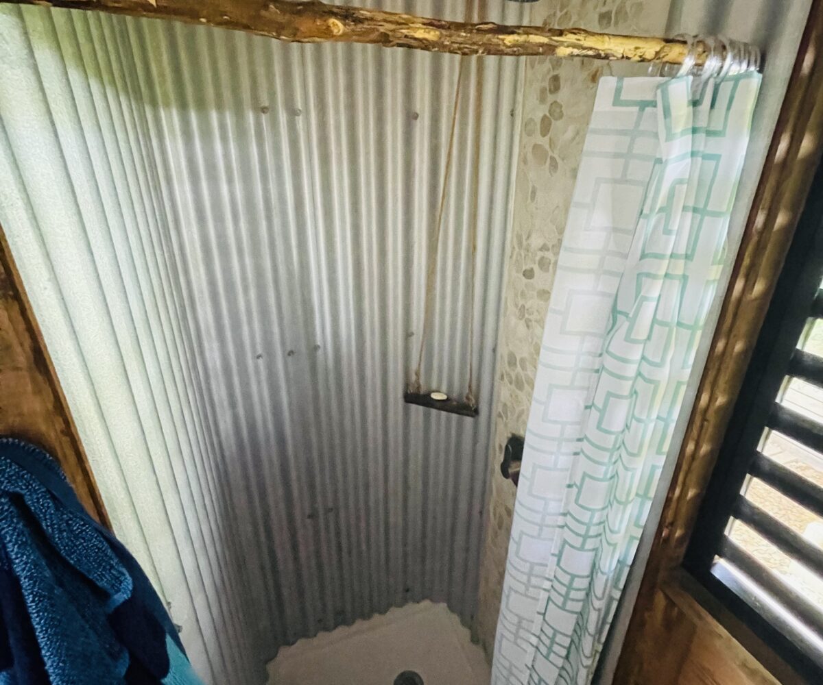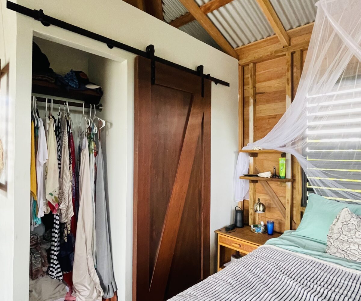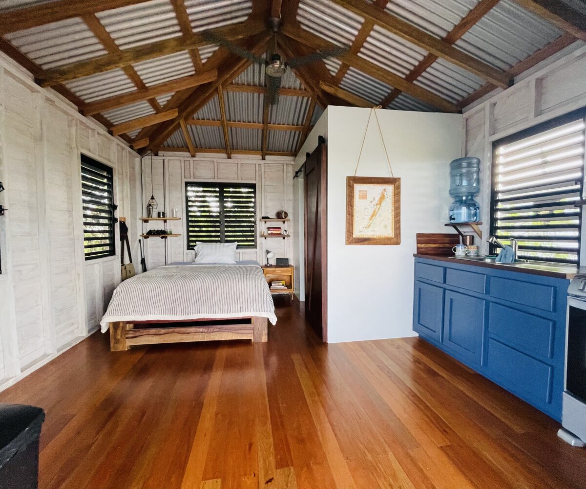 The casitas are little tiny homes constructed with a hip roof which allows for water collection from all 4 sides of the roof. The seller has designed larger 2 foot eaves on all 4 sides for better rain protection and collection. The windows of the units are not glass, but are hurricane proof locking louvers and screens. The homes include a complete 3 piece bathroom, full kitchenette, and a bedroom area with separate closet. 2 Beautiful mahogany barn doors open up onto the 8 foot deep veranda area with removable screens used for dining and relaxing.