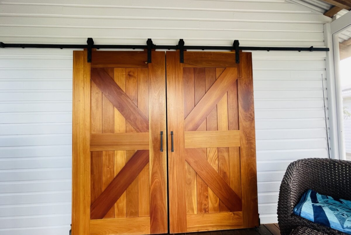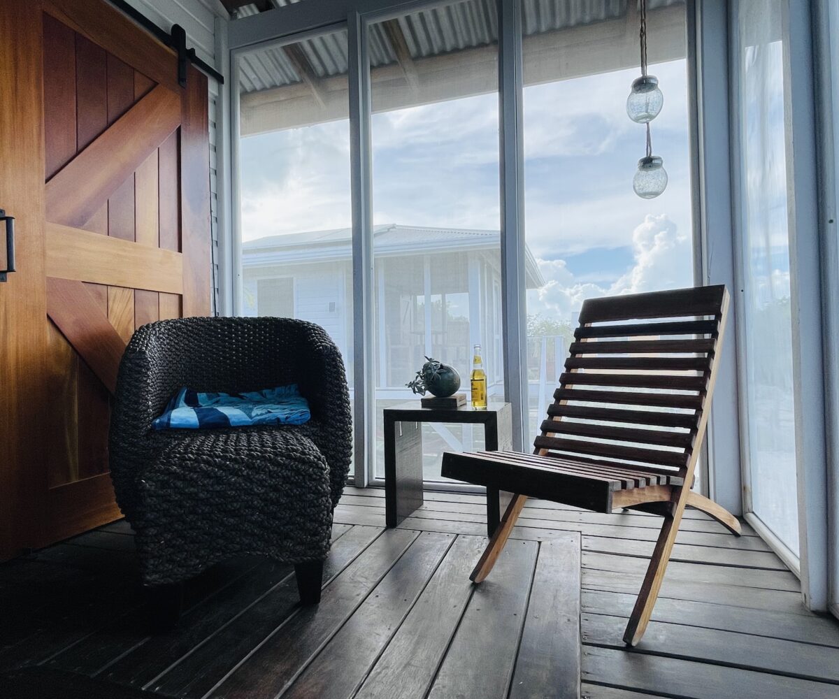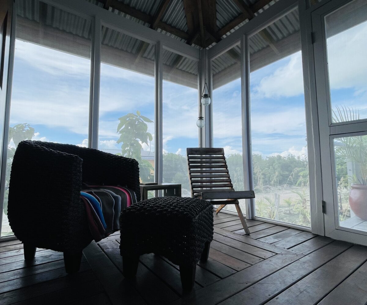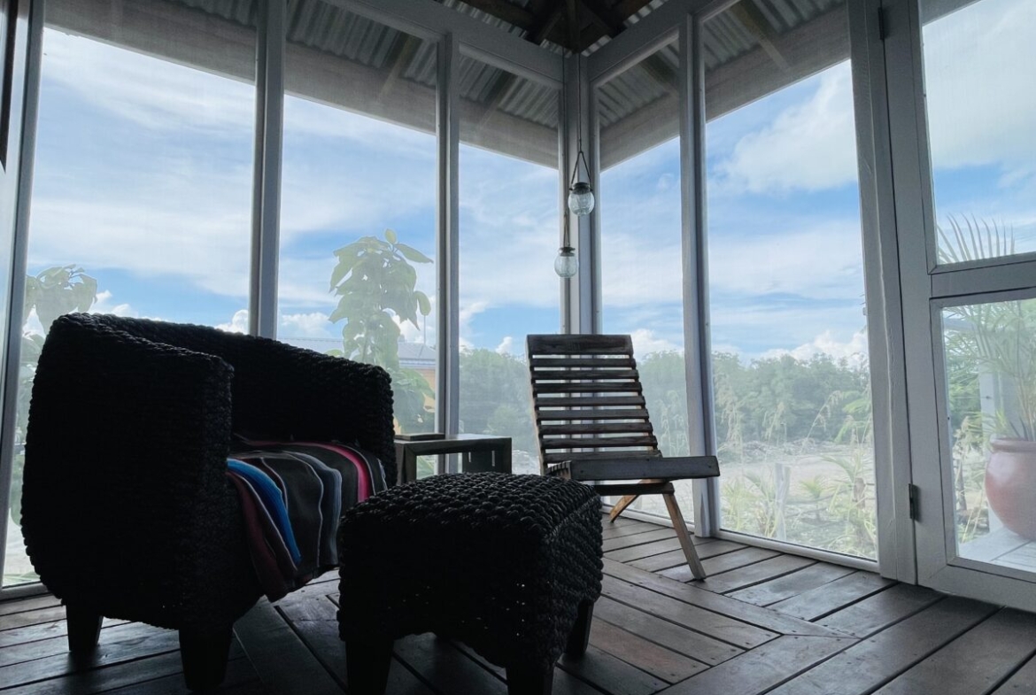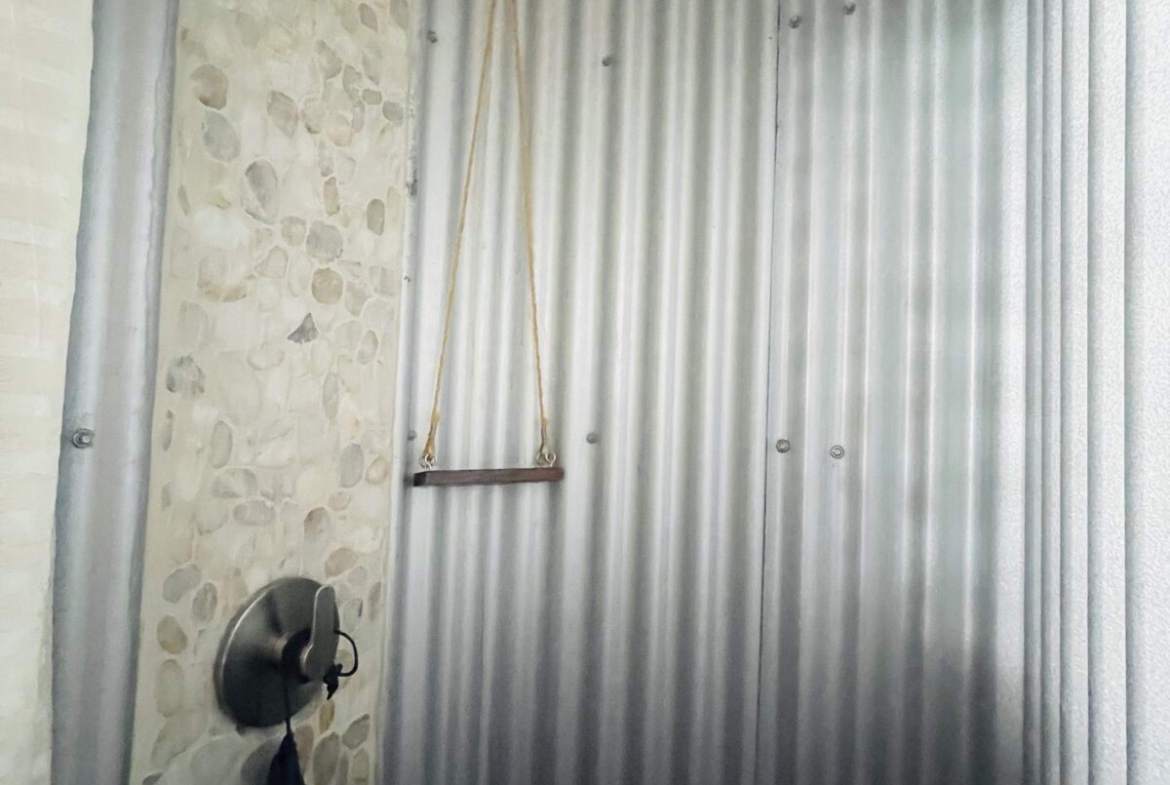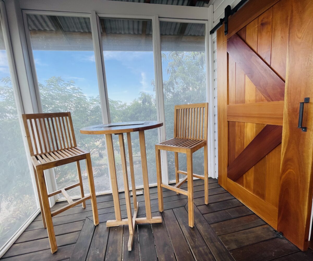 The casitas are little tiny homes constructed with a hip roof which allows for water collection from all 4 sides of the roof. The seller has designed larger 2 foot eaves on all 4 sides for better rain protection and collection. The windows of the units are not glass, but are hurricane proof locking louvers and screens. The homes include a complete 3 piece bathroom, full kitchenette, and a bedroom area with separate closet. 2 Beautiful mahogany barn doors open up onto the 8 foot deep veranda area with removable screens used for dining and relaxing.