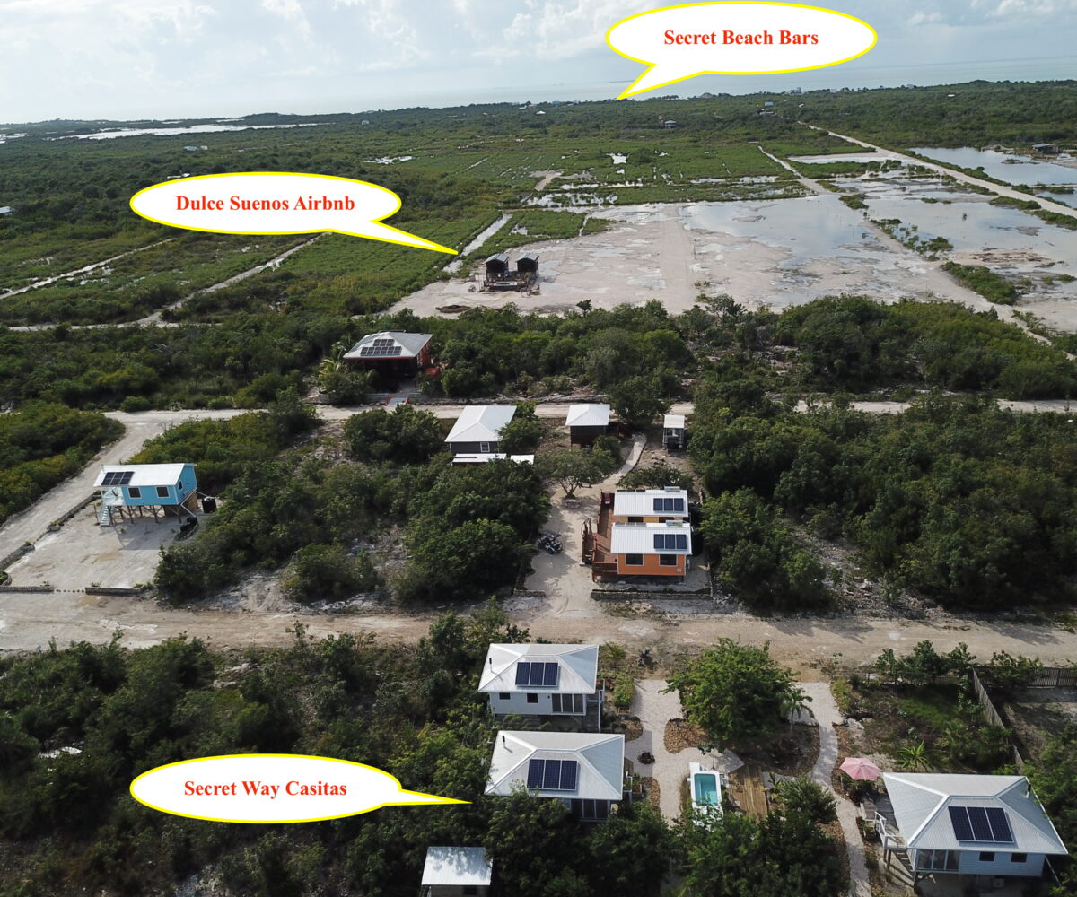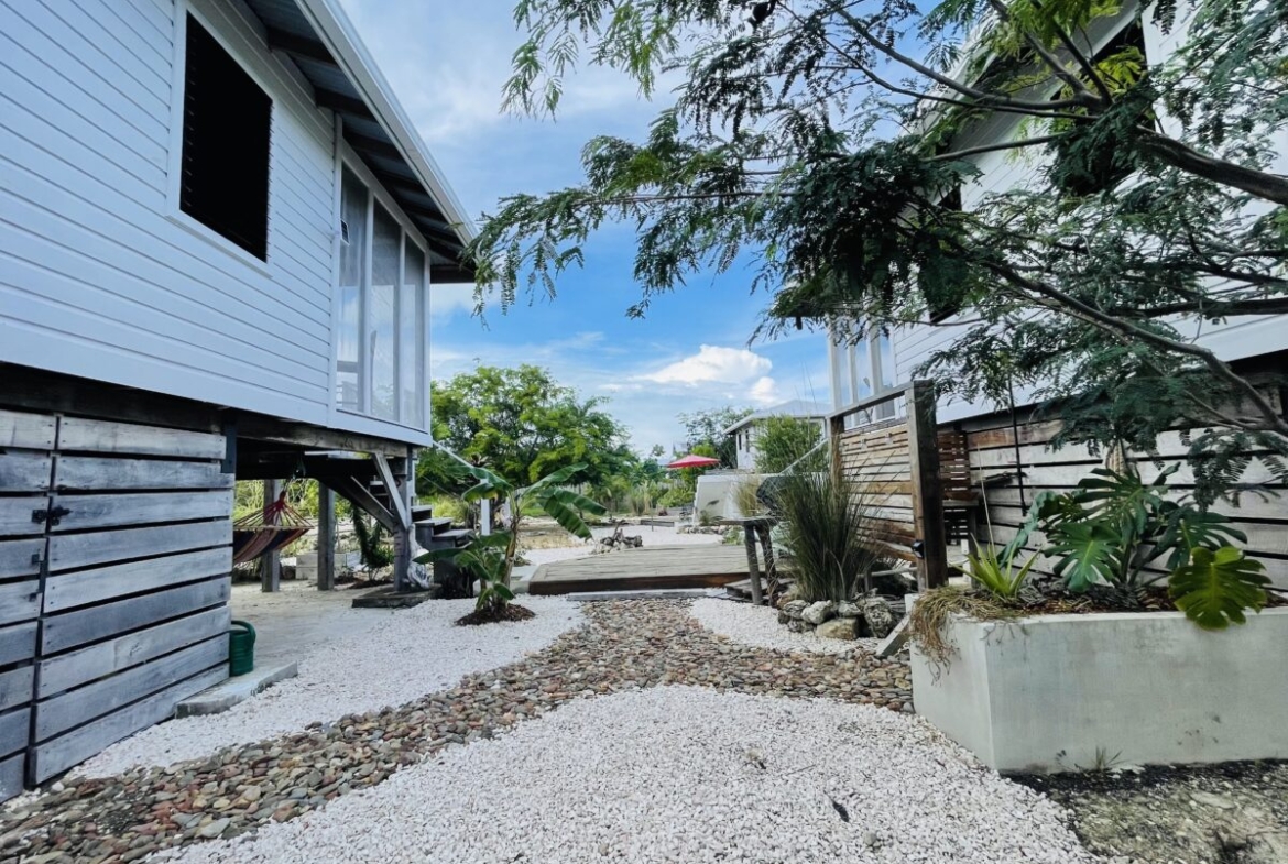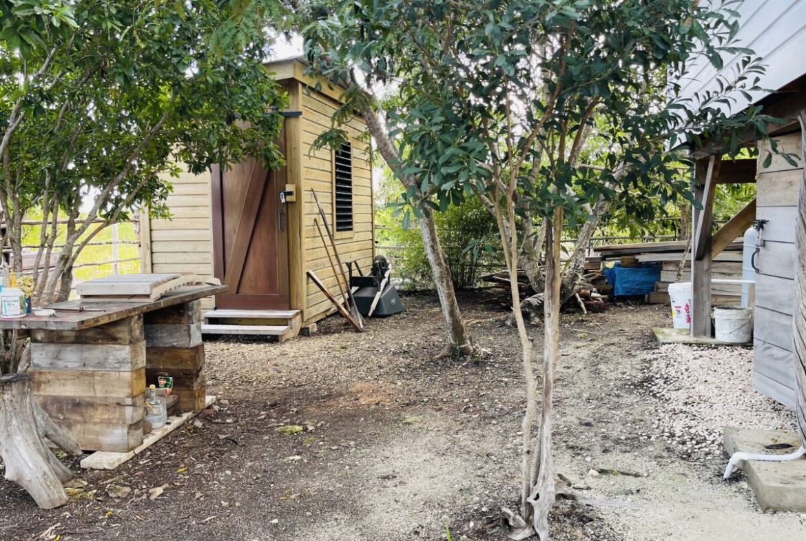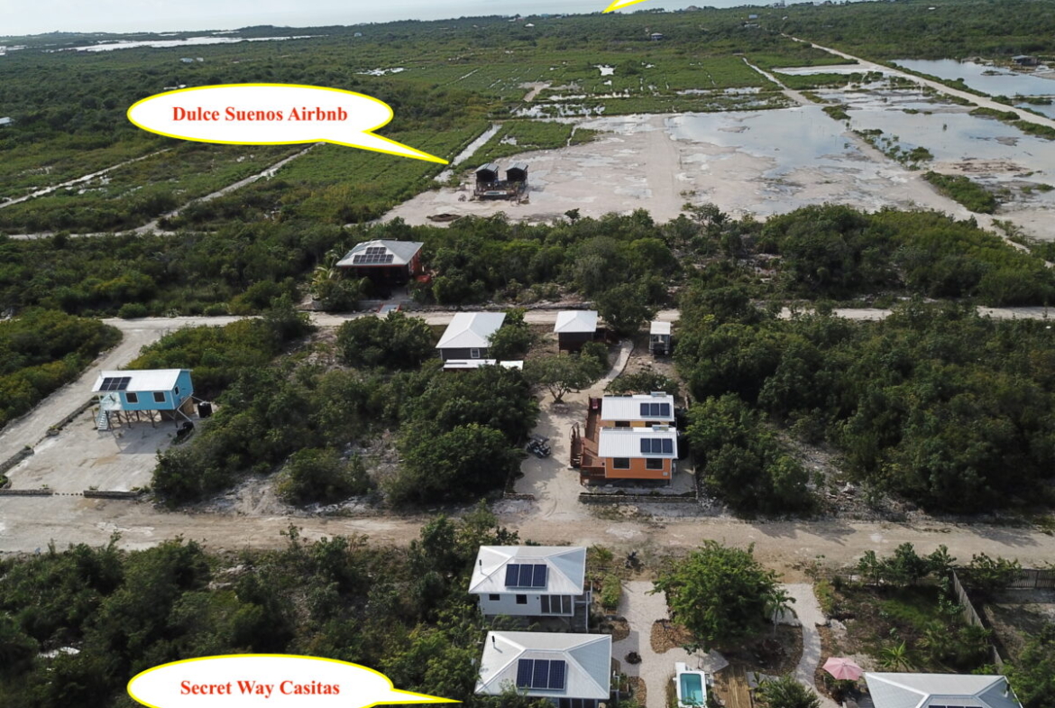 The listing includes two 300 square foot Belizean hardwood casitas brought over from Spanish Lookout; they have been put up on 6 foot high posts, and are all skirted to maintain privacy of the utilities, and eliminate clutter.