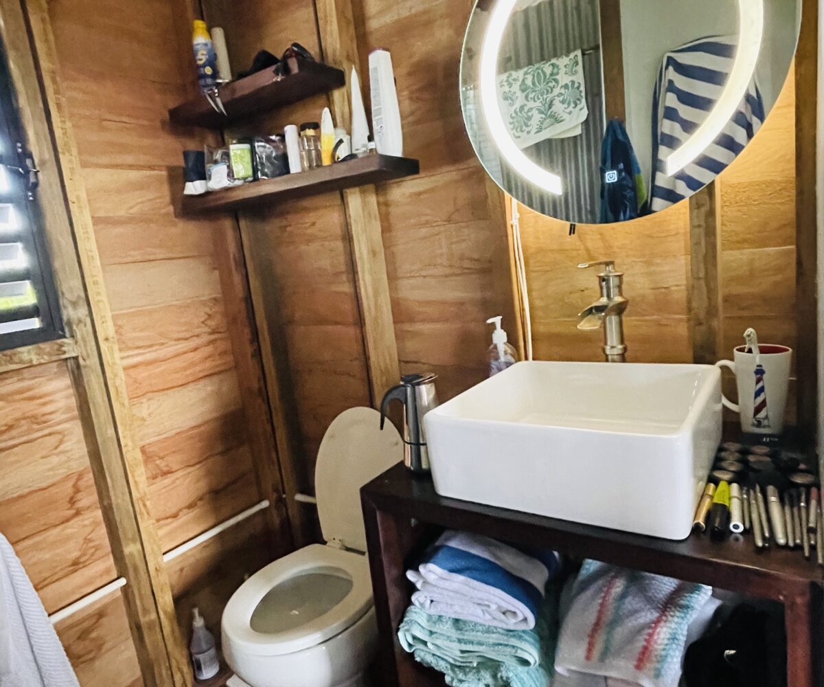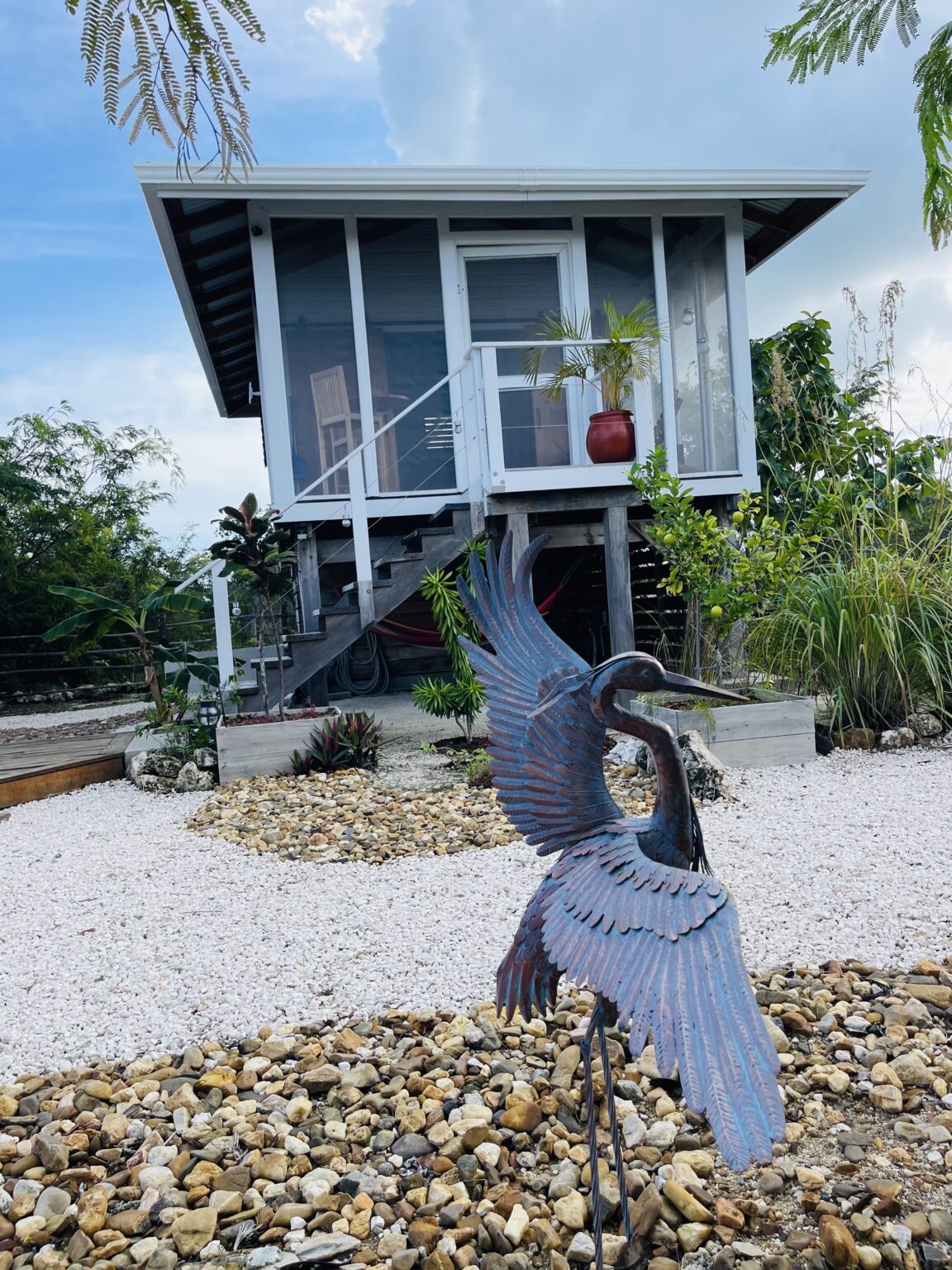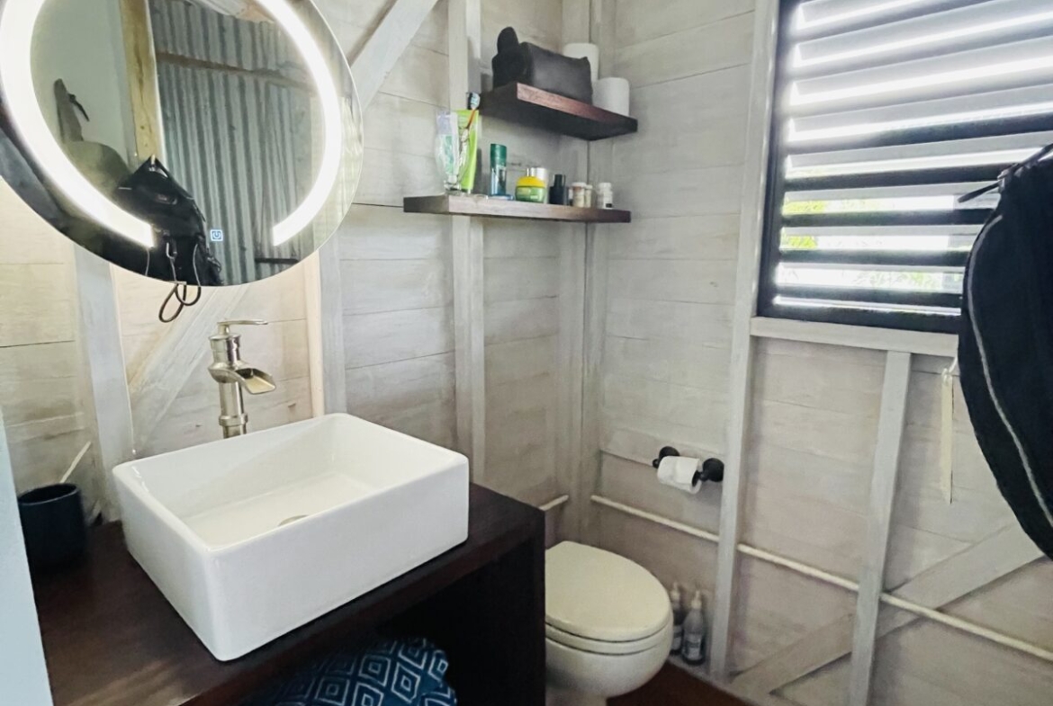 The listing includes two 300 square foot Belizean hardwood casitas brought over from Spanish Lookout; they have been put up on 6 foot high posts, and are all skirted to maintain privacy of the utilities, and eliminate clutter.