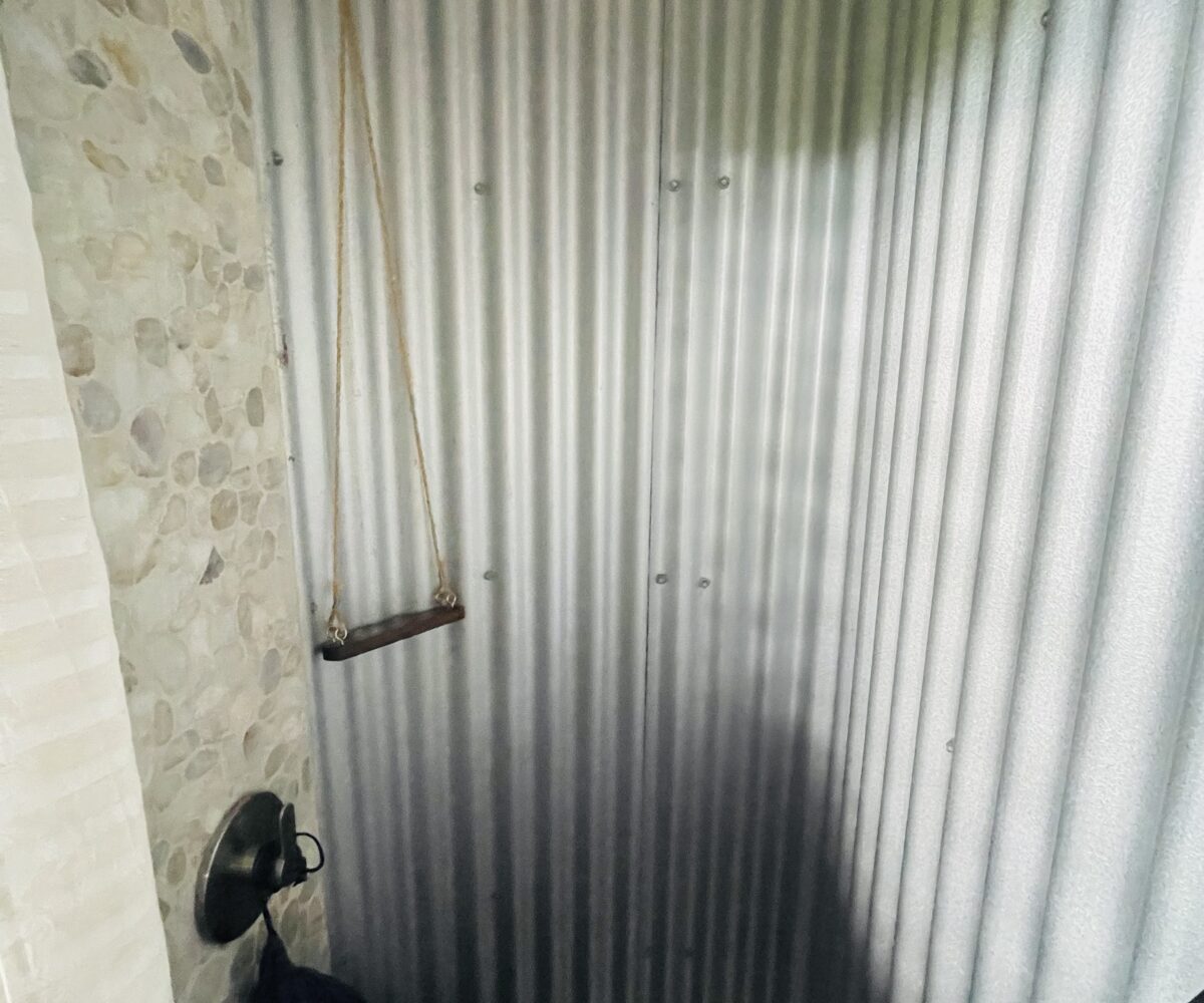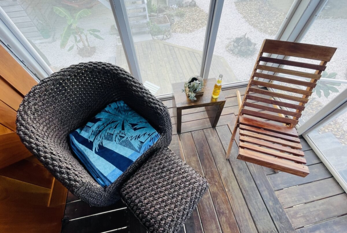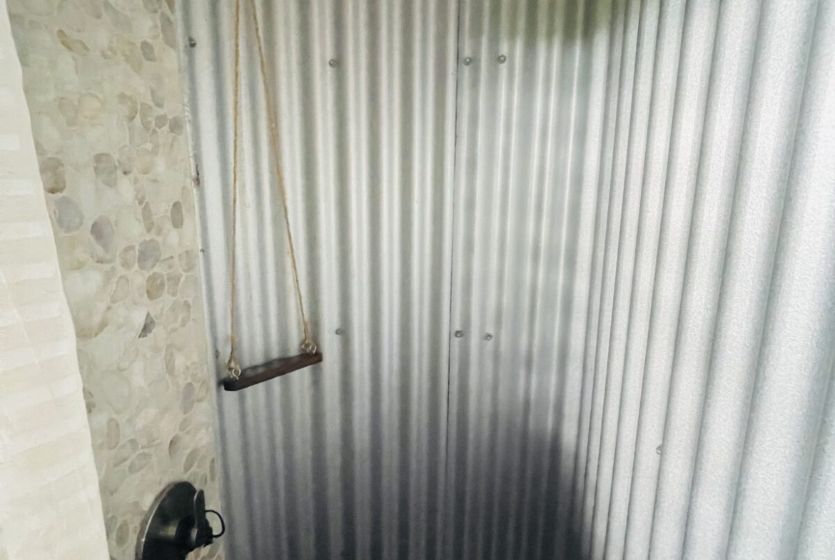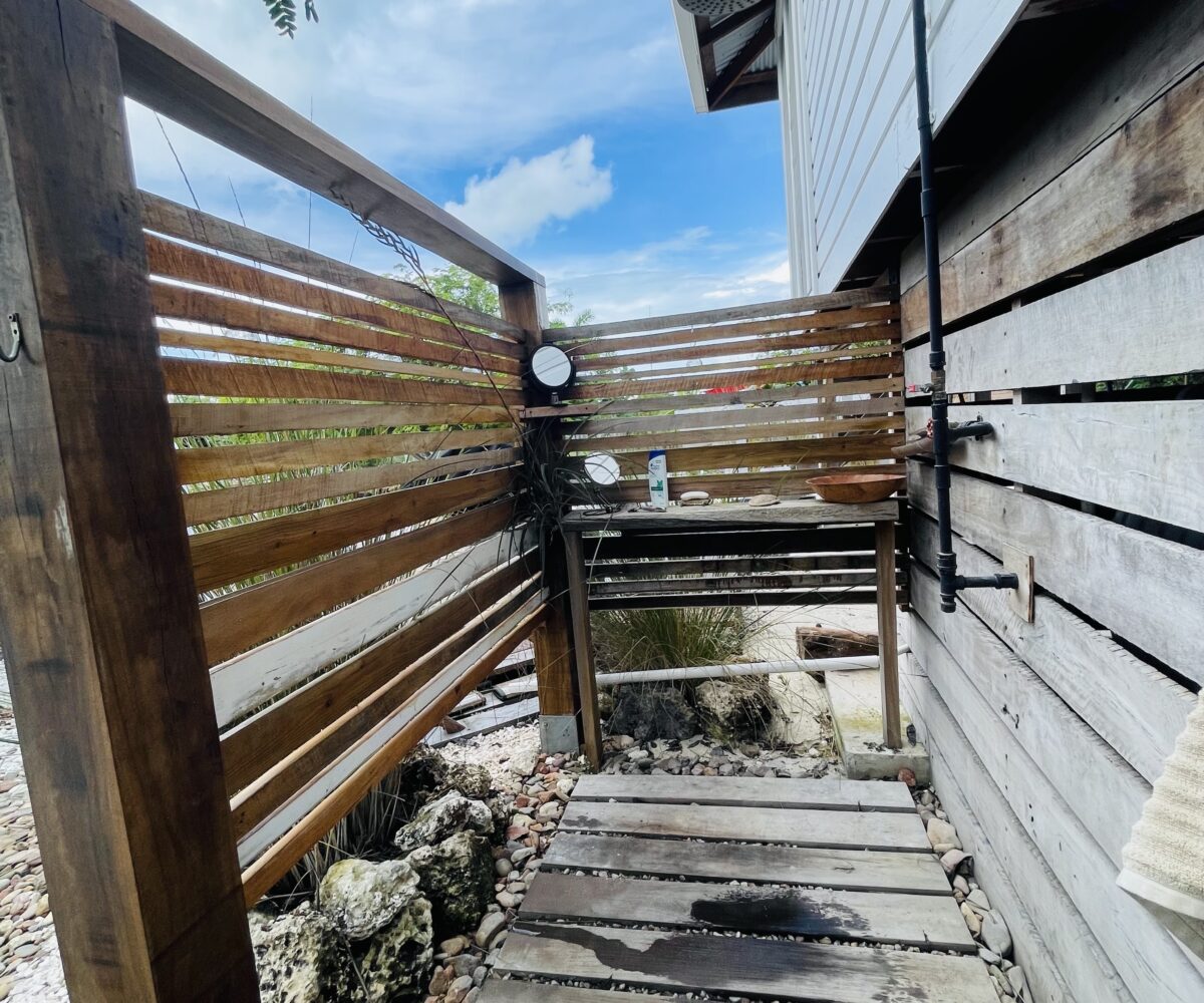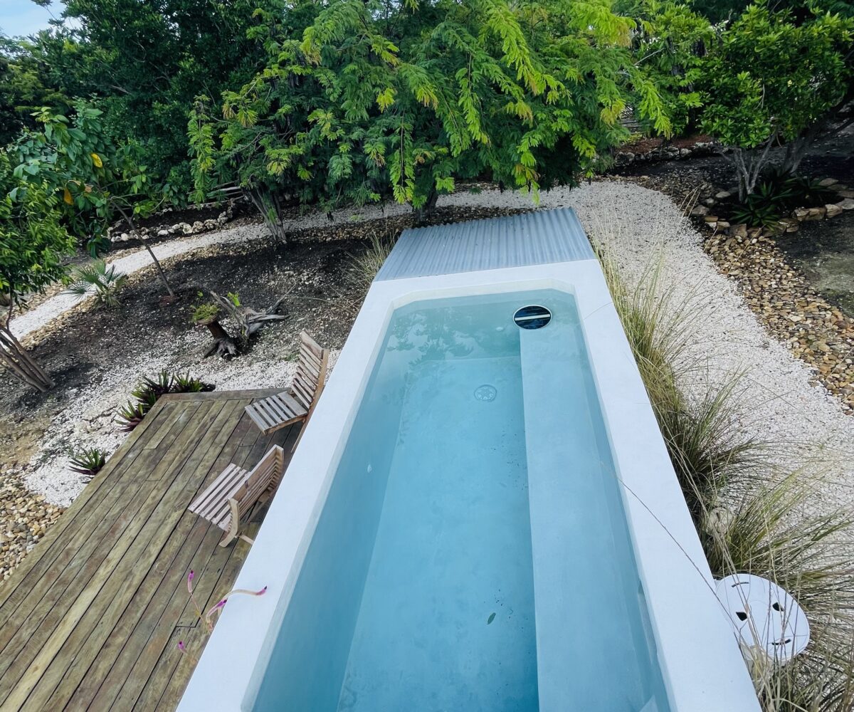 The overall property includes but is not limited to: a concrete above ground 6 ft. x 10 ft. plunge pool. The pool lighting and pumping system are solar powered, and run off the main system. The property has 2 belizean hardwood decks, a screened in outdoor shower, a 6 foot x 10 foot windowed storage building in the back of the property, as well as an outdoor woodworking area.