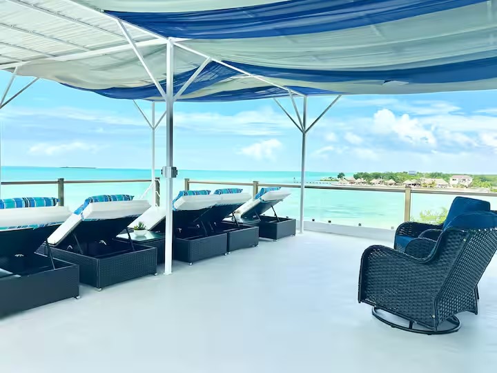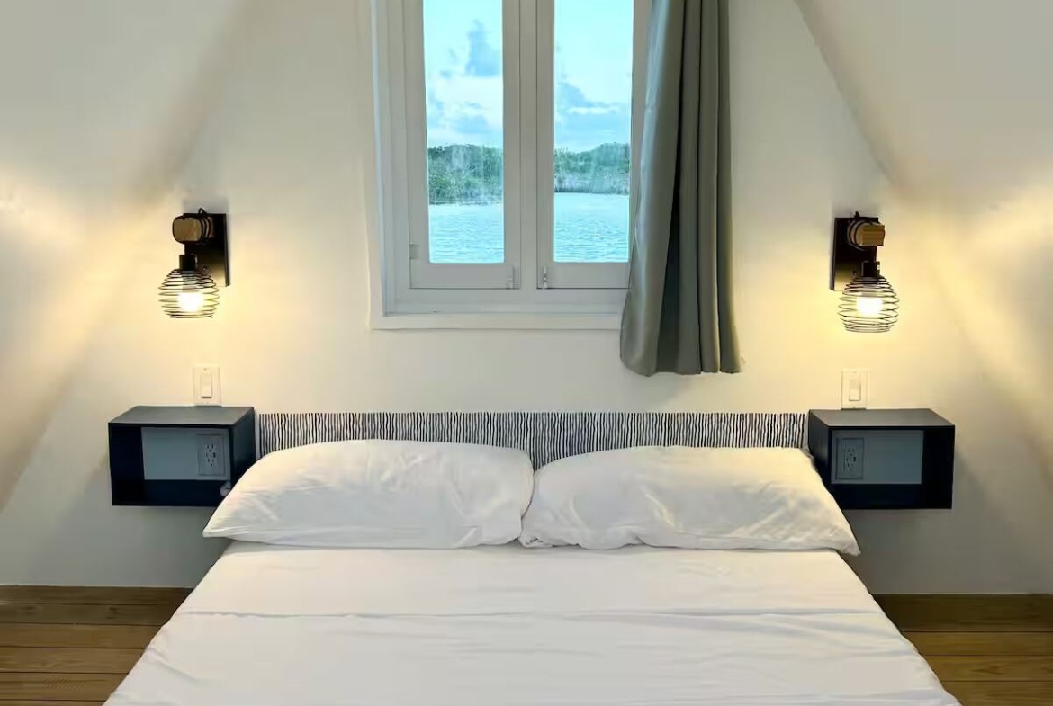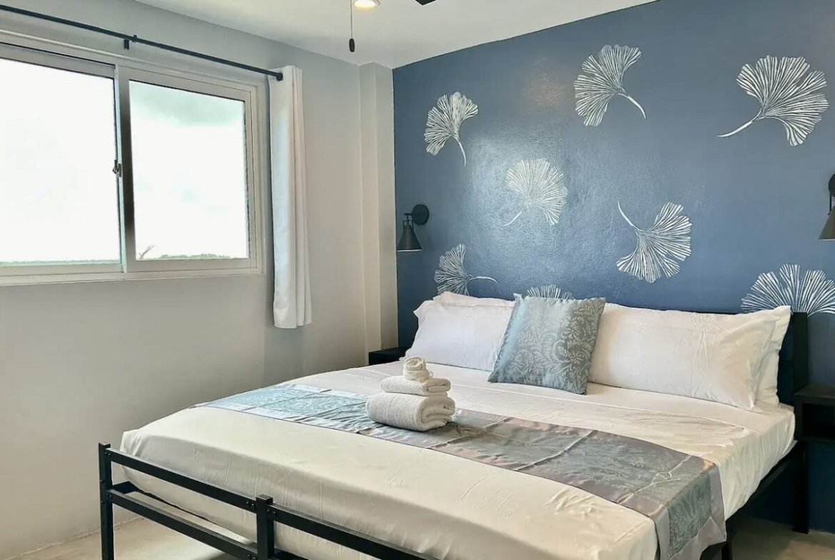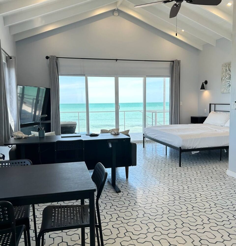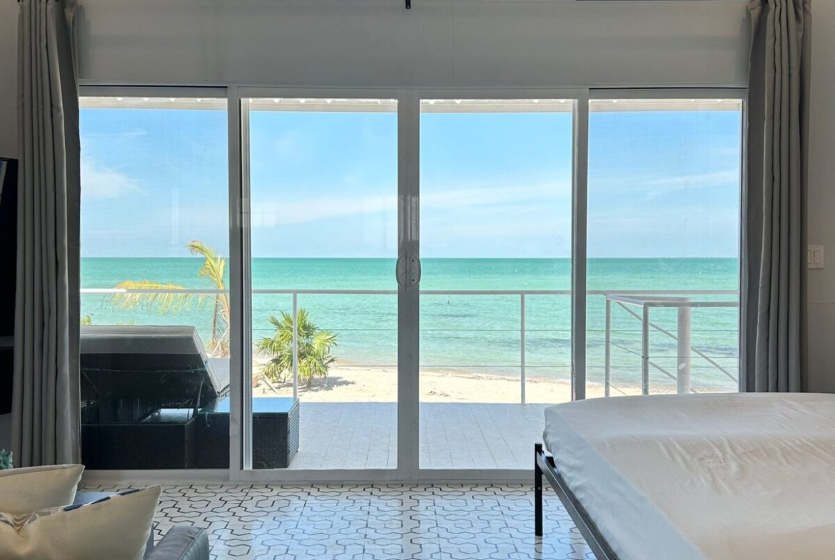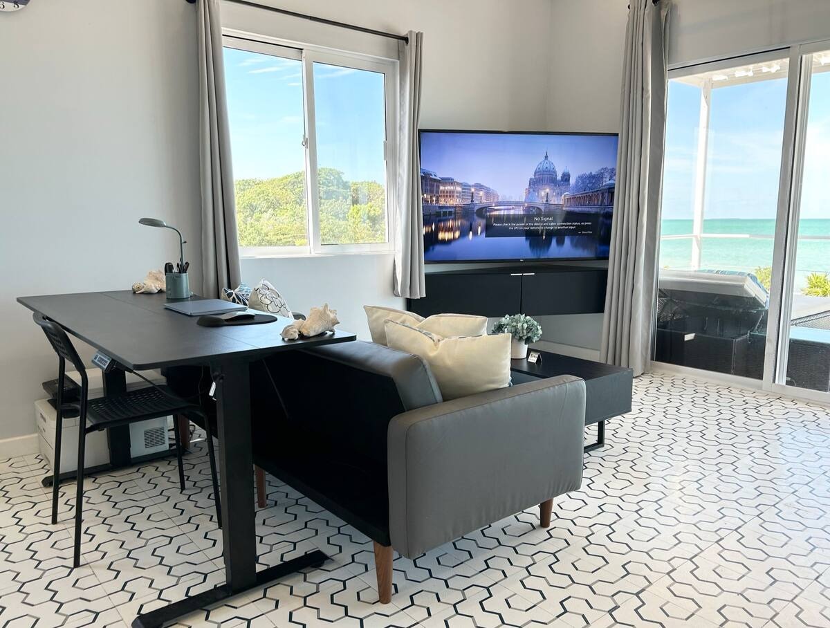 The main home features a spacious layout with 3 beautifully appointed bedrooms and 2 bathrooms upstairs, offering 1,000 square feet (93 m²) of modern living space. The open-concept design seamlessly integrates the kitchen and living areas, creating an inviting atmosphere perfect for entertaining or unwinding after a day at the beach. Enjoy breathtaking sea views from your private balcony—ideal for sipping morning coffee or watching the sunset over the horizon.