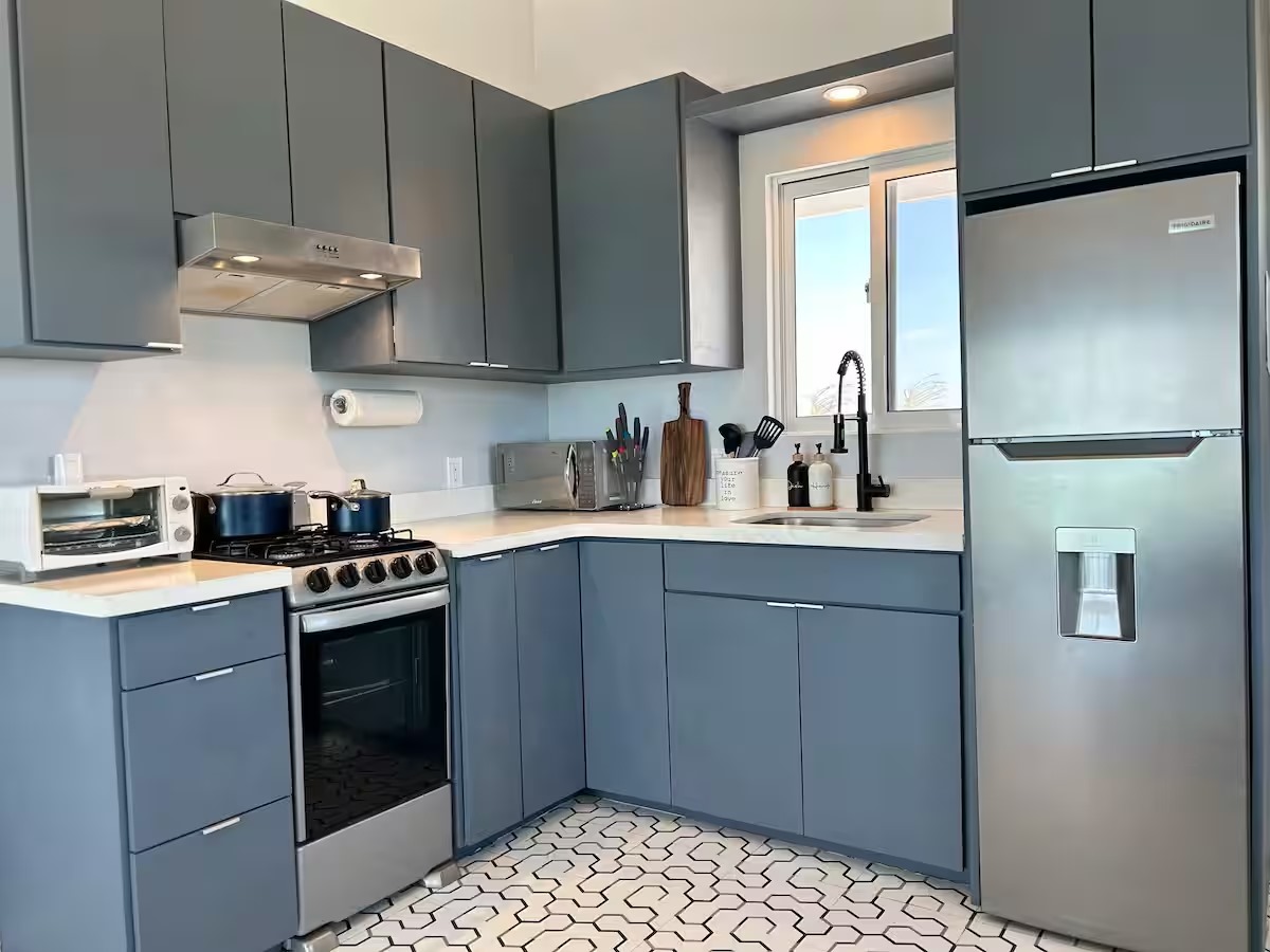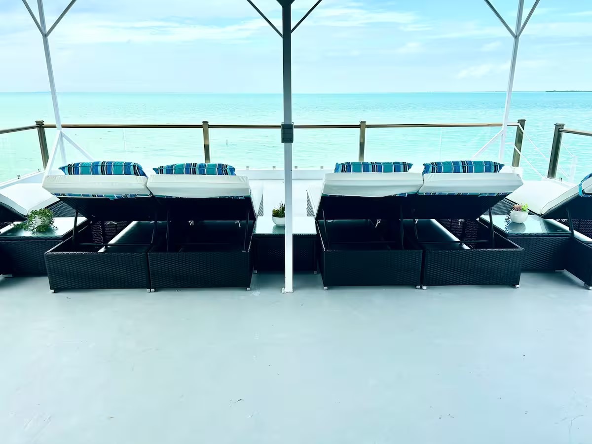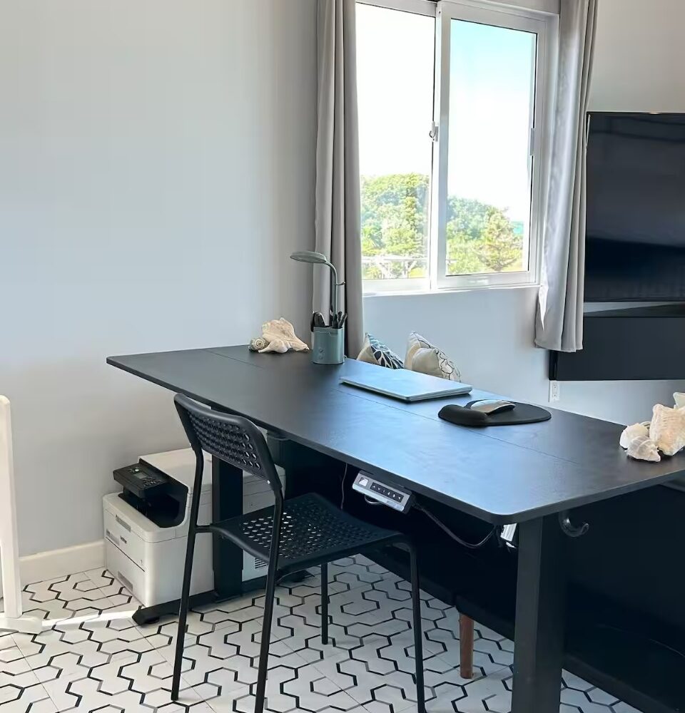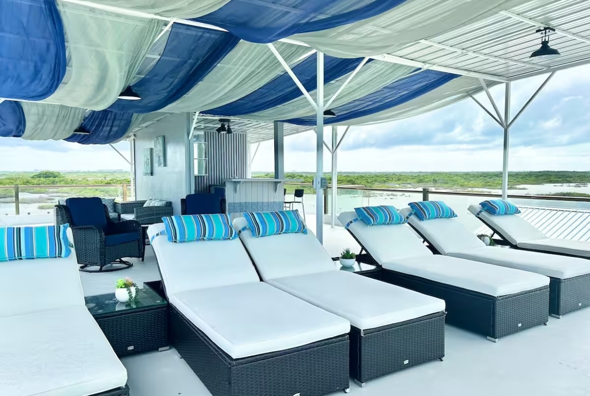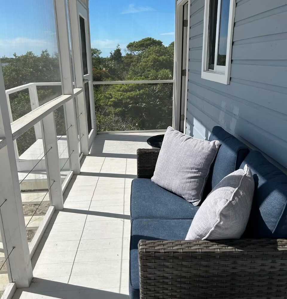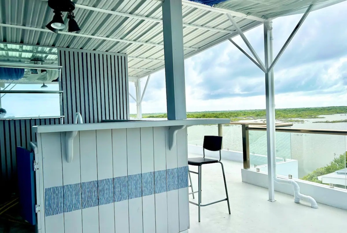 The main home features a spacious layout with 3 beautifully appointed bedrooms and 2 bathrooms upstairs, offering 1,000 square feet (93 m²) of modern living space. The open-concept design seamlessly integrates the kitchen and living areas, creating an inviting atmosphere perfect for entertaining or unwinding after a day at the beach. Enjoy breathtaking sea views from your private balcony—ideal for sipping morning coffee or watching the sunset over the horizon.