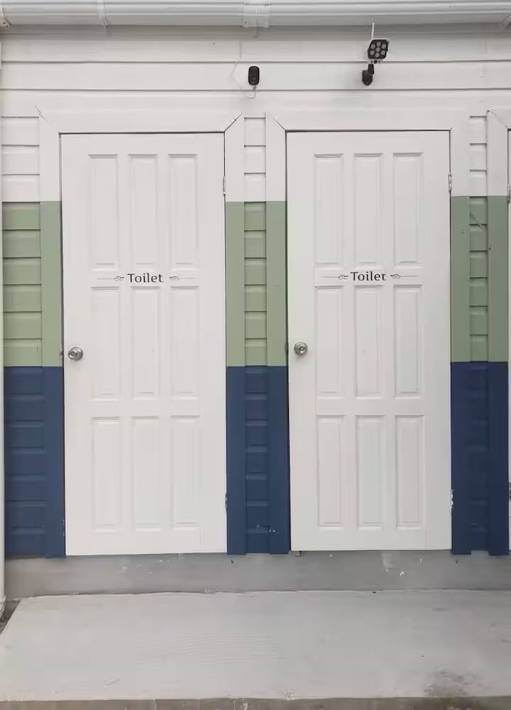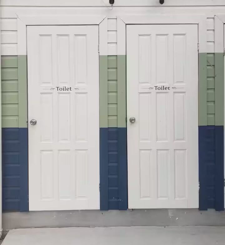 each tent has its own outdoor bathroom,